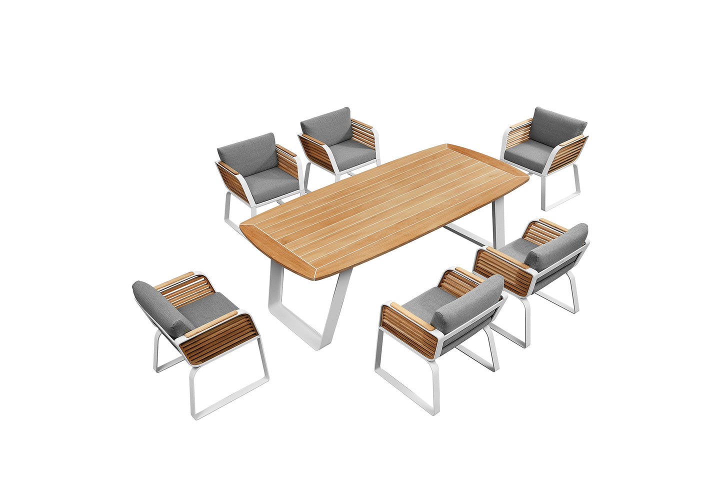 [Elegant and Durable Teak Wood Design] With 155mm wide teak wood slates crafted into an egg shape, the coffee and side tables in the AIO collection not only add a touch of elegance but also offer robust durability. The teak wood ensures long-lasting beauty and functionality.